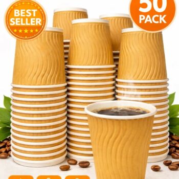 50 Pack 8oz/227ml High Quality Kraft Ripple Paper Cups | Hot & Cold Drinks