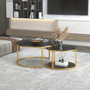 Set of 2 Round Stacking Sofa Side Tables for Living Room